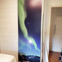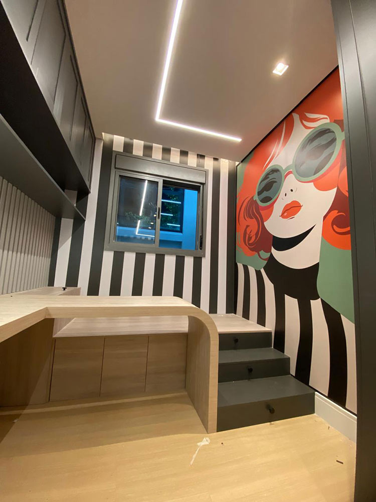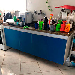 Oferecemos também o serviço de envelopamento de armários com adesivos em recorte com cores lisas e foscas, solte sua criatividade e nos envie sua ideia.