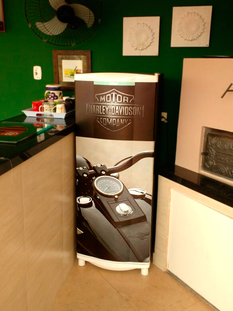 Com o envelopamento de geladeira você pode deixá-la com um visual super moderno. Cores lisas como black piano e foscas para dar aquele diferencial. Imagens diversas e marcas famosas, Heineken, Johnnie Walker, Jack Daniels, Budweiser, Skol, Coca-Cola e muito mais. Oferecemos também o serviço de envelopamento com artes exclusivas, escolha suas fotos e envie para nós!
