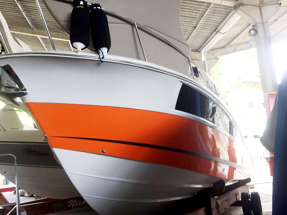 Para envelopamento náutico desenvolvemos previamente um layout exclusivo, renove o visual de sua embarcação com a LLX Visual. Diversas opções de cores com materiais importados de qualidade Oracal, itens adicionais como nome e detalhes em recorte para uma aplicação perfeita.